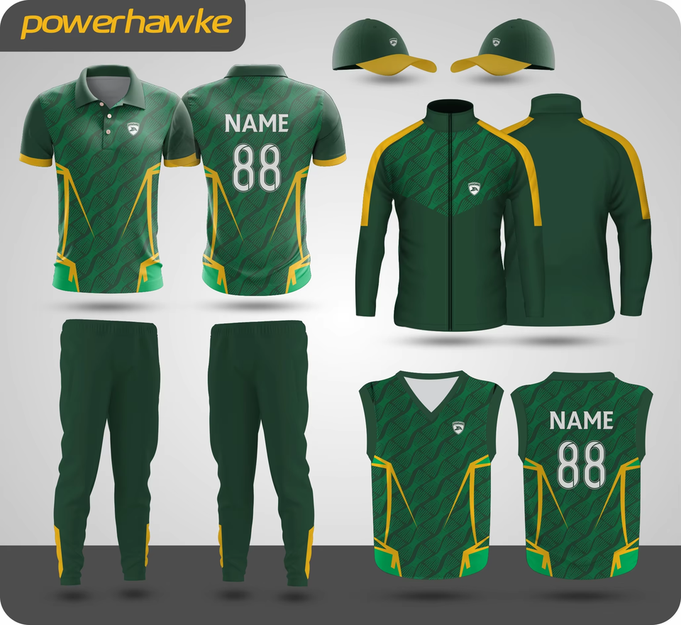 เสื้อยืดคอกลมแขนครึ่งแขนเสื้อสไตล์คริกเก็ตพร้อมกางเกงวอร์มสีสวยอินเทรนด์