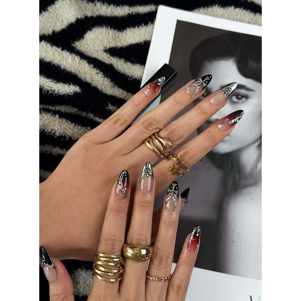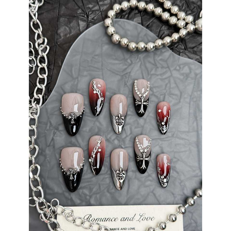 สีแดงเข้มคำปฏิญาณกดบนเล็บที่สง่างามและทันสมัย