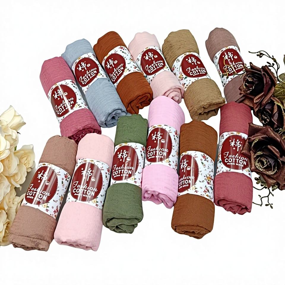 ผ้าคลุมไหล่ลายดอกไม้ผ้าฝ้ายย่นสำหรับผู้หญิงมุสลิม ผ้าชีฟองทอระบายอากาศได้ดี ย้อมสีสวยงาม นุ่มสบาย