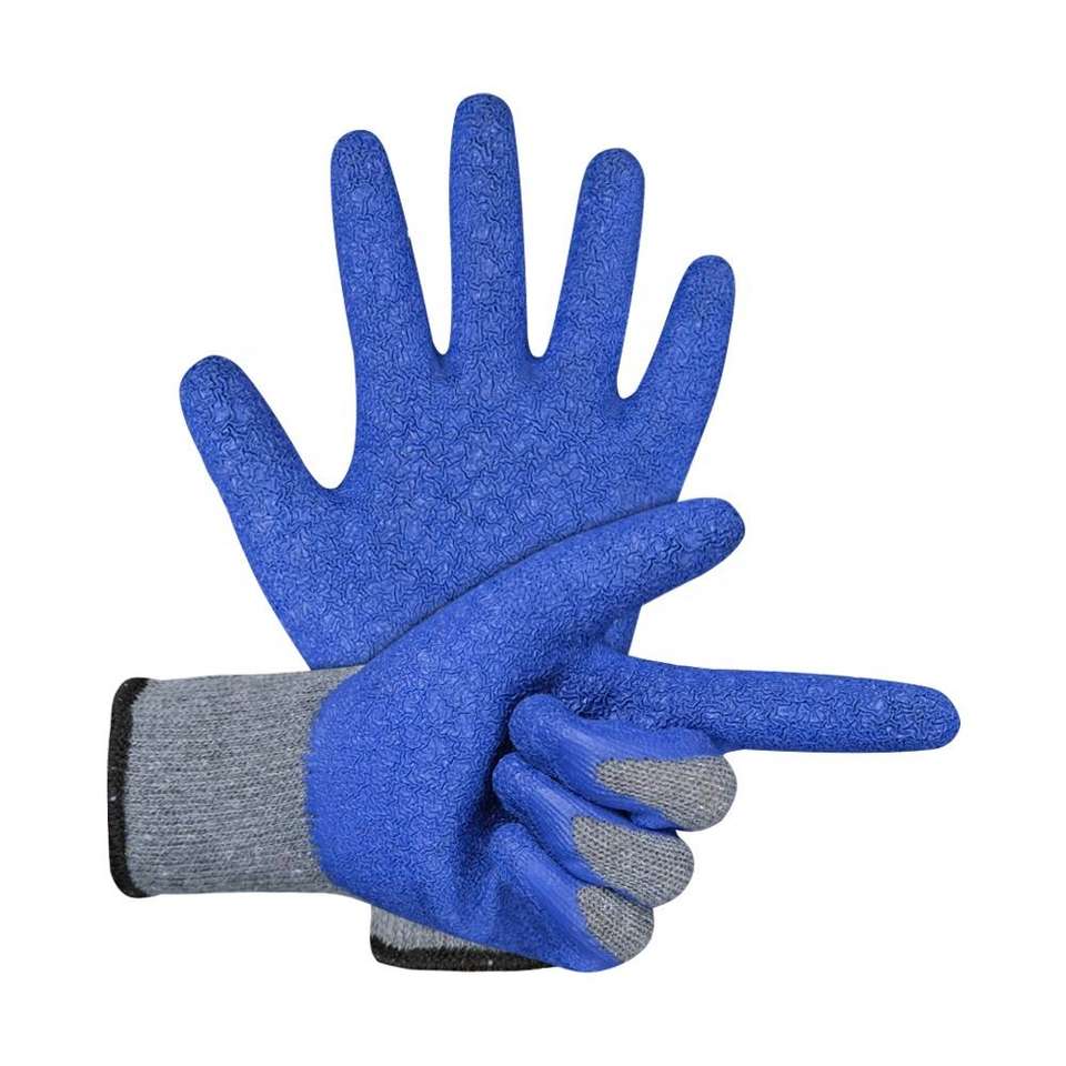 ถุงมือทำงานเนื้อผ้า CVC ลายย่นเคลือบยางธรรมชาติ โพลีเอสเตอร์ถักไร้รอยต่อ ป้องกันการเสียดสี ผลิตจากโรงงานในเวียดนาม