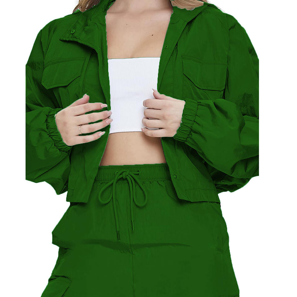 ชุดวอร์มกางเกงผ้าไนลอนผ้าโพลีเอสเตอร์แบบย่นน้ำหนักเบาสำหรับผู้หญิงชุดวอร์ม