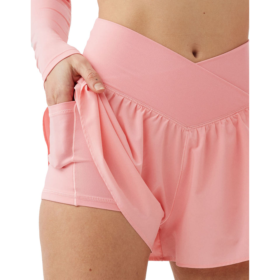 คริส-ครอสเอวกางเกงขาสั้นผู้หญิงคุณภาพสูงกางเกงขาสั้นฤดูร้อนสบายแฟชั่นใหม่สำหรับผู้หญิงผ้าฝ้ายรัดรูปมีกระเป๋าด้านข้างกางเกงขาสั้นสีชมพู