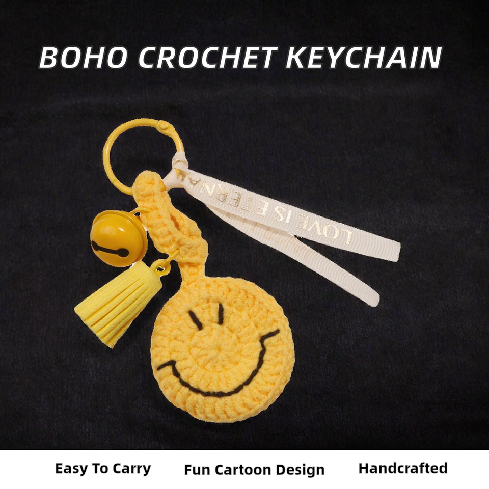 พวงกุญแจตุ๊กตาขนสัตว์ถักโครเชต์สไตล์โบฮีเมียน น้ำหนักเบา พกพาสะดวก ใช้เป็นกระเป๋าใส่ของ กระเป๋าสตางค์ หรือพวงกุญแจ พร้อมพู่ห้อยและกระดิ่ง