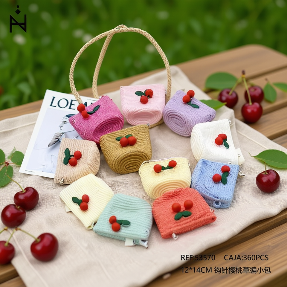 กระเป๋าโครเชต์เชอร์รี่ 12x14 ซม. กระเป๋าสะพายข้างถักขนาดเล็กสำหรับผู้หญิง เครื่องประดับแฟชั่น