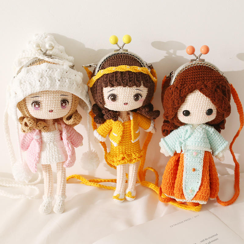 กระเป๋าตุ๊กตาโครเชต์กระเป๋าสะพายข้างโครเชต์