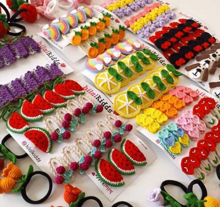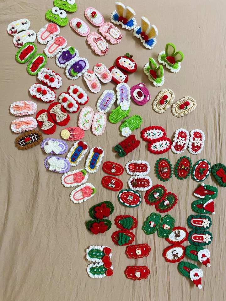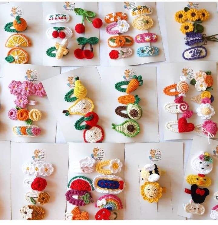 กิ๊บติดผมอะคริลิคไหมพรมอุปกรณ์เสริมผมโครเชต์แฮนด์เมดสไตล์วันหยุดสำหรับผู้หญิงทำงานฝีมือในเวียดนาม