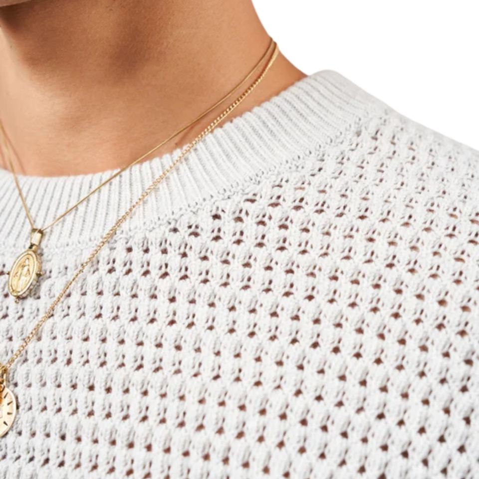 เสื้อยืดถักโครเชต์ลายทางตัดกัน สีเทา แขนสั้น เนื้อผ้าถักแบบมีเท็กซ์เจอร์ สวมใส่สบายๆ ในฤดูร้อน ระบายอากาศได้ดี คอกลม