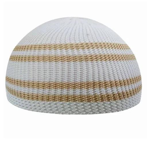 หมวกถักไหมพรมถักแบบดั้งเดิมของชาวเตอร์กีทาฉีอิสลามสีขาวธรรมดาซาเดีย Topi ถักนิตติ้ง kufi kufi koofi kofi หมวกสำหรับมัสยิดอธิษฐาน