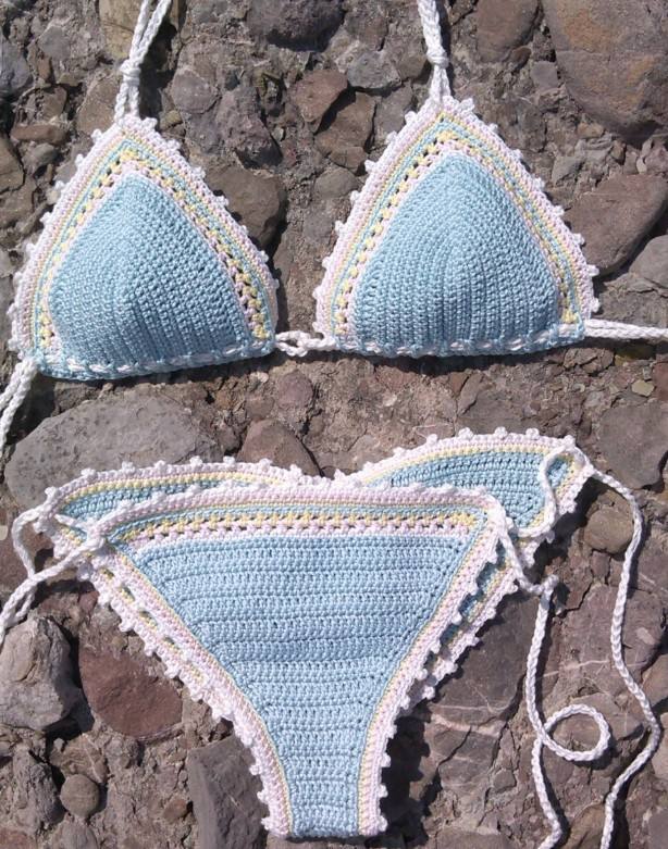 ชุดบิกินี่โครเชต์ทำมือ สีฟ้าอ่อนแบบ Sea foam