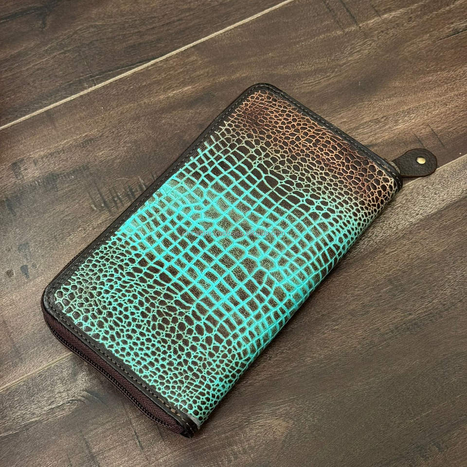 Product name:Crocodile Pattern Hand Tooled Leather Zipper Clutch