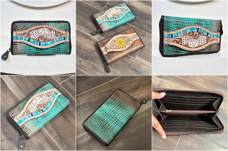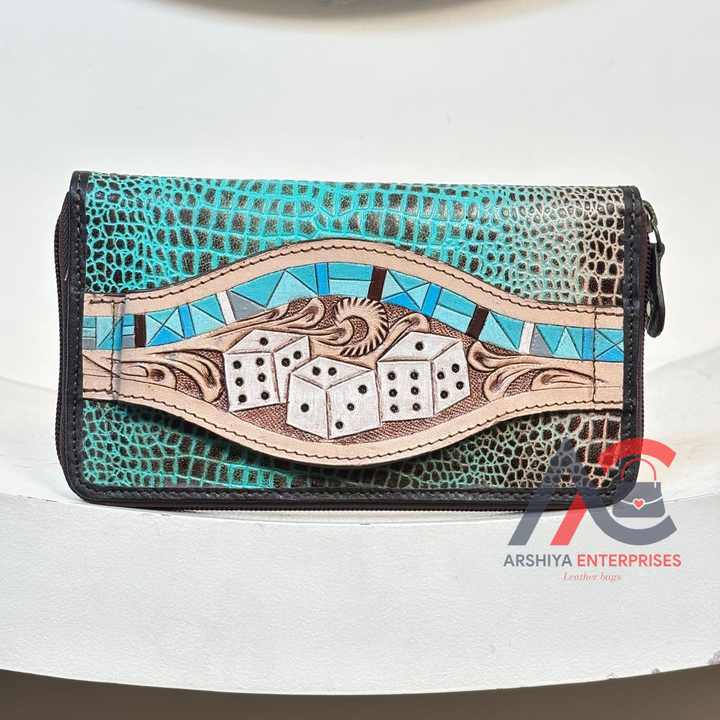 Product name:Crocodile Pattern Hand Tooled Leather Zipper Clutch