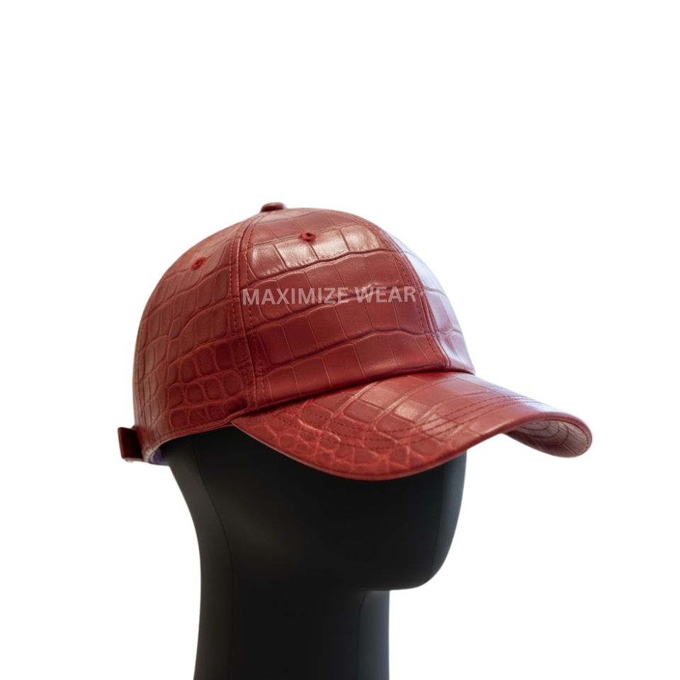 หมวกเบสบอลหนังจระเข้นูนหมวกปรับได้หรูหราสำหรับผู้ชายและผู้หญิงทำด้วยมือหนังแท้สำหรับสวมใส่สูงสุด