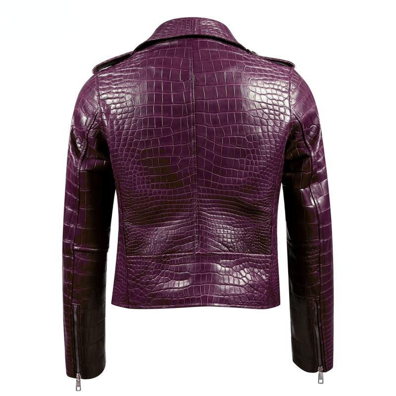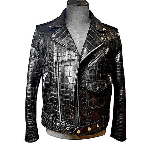 เสื้อแจ็คเก็ตหนังลายจระเข้สำหรับผู้ชาย หนังแท้ลายจระเข้สุดหรู เสื้อแจ็คเก็ตนักขี่มอเตอร์ไซค์สำหรับฤดูหนาว ขายส่งและรับสั่งทำ