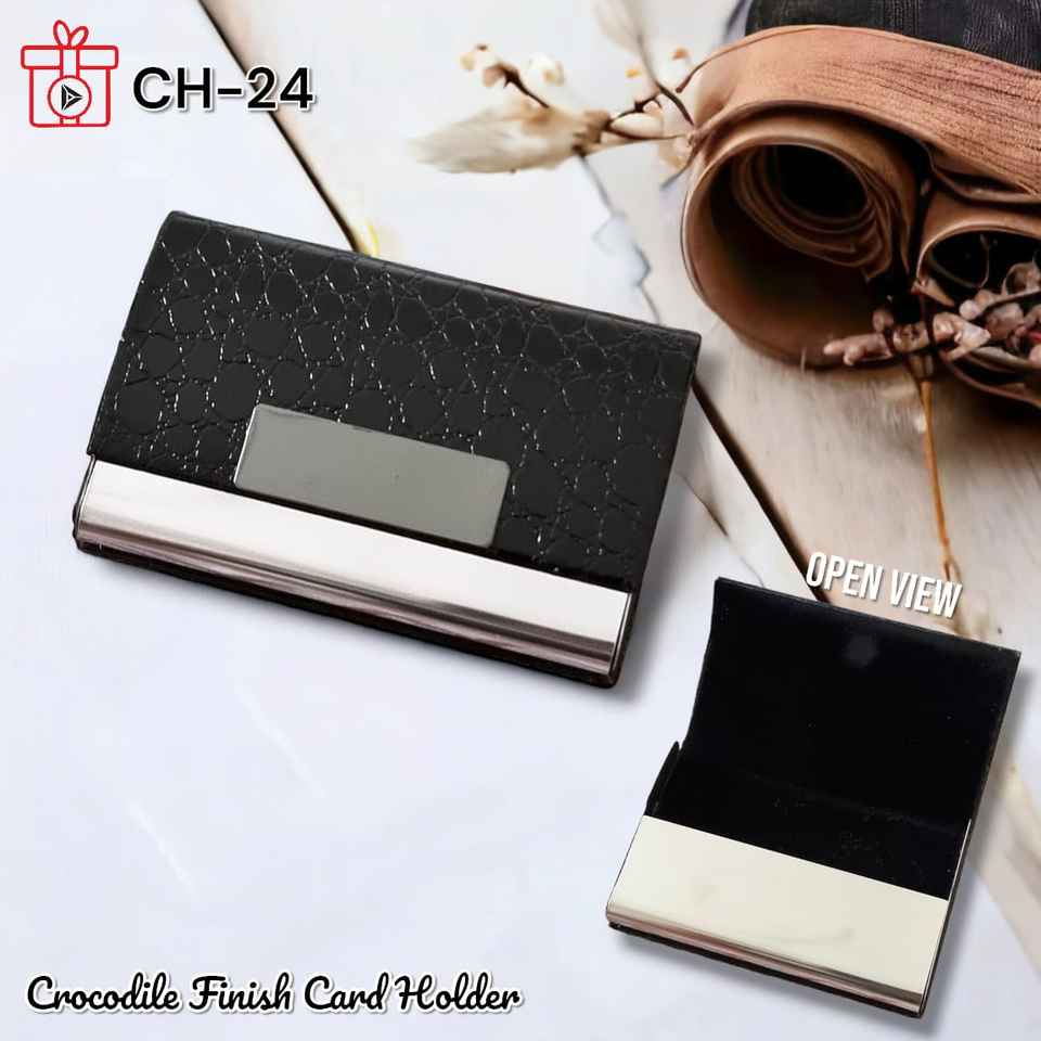 กระเป๋าใส่บัตรเครดิตหนังแท้สีดำสำหรับนักธุรกิจ รุ่น Crocodile Finished