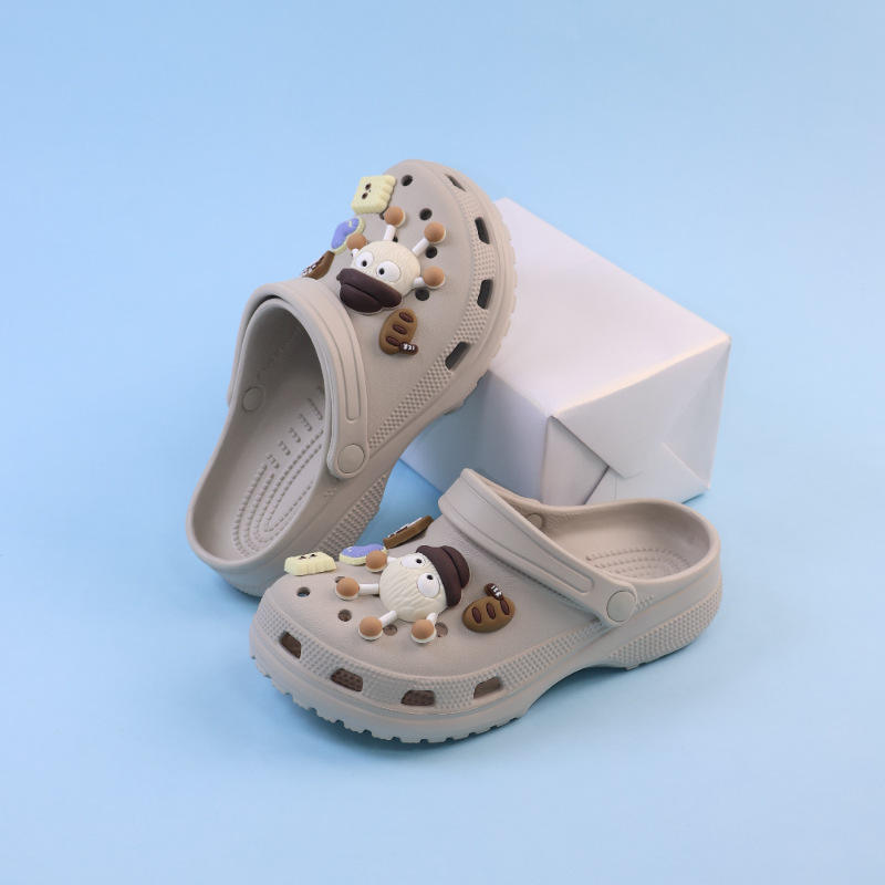 รองเท้าแตะแบบสวมสำหรับผู้หญิงของ Crocs สีเบจ ส้นสูง 3 ซม. กันลื่น ปิดนิ้วเท้า รองเท้าแตะสำหรับฤดูร้อน ไซส์ 24-45 พื้นรองเท้าแบบฉีดขึ้นรูป