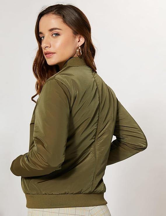 Crop Street Quilted Jacket Women Casual Zipper Closure Solid Color Varsity with Two Pockets Raw Printed Canvas