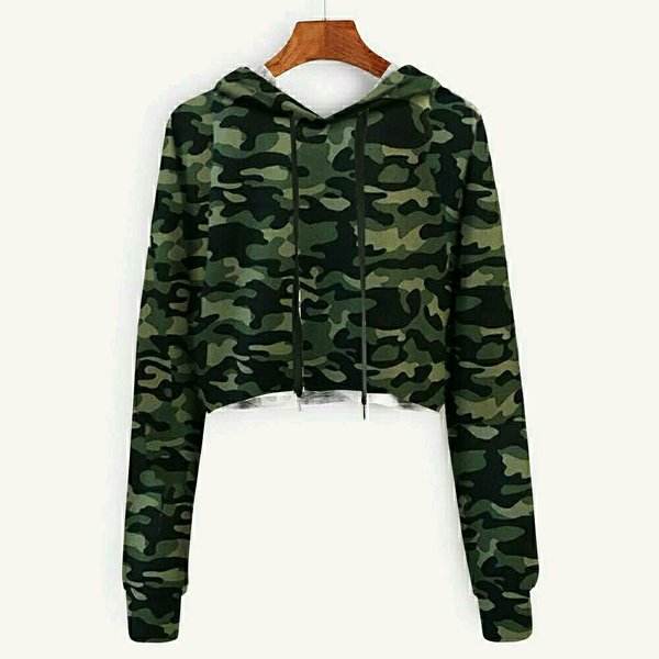 เสื้อฮู้ดครอปพิมพ์ลายพรางแบบออกแบบเองสำหรับผู้หญิง ขายส่งเสื้อฮู้ดครอปแขนยาวพิมพ์ลายพรางสำหรับผู้หญิงแบบสั่งทำ