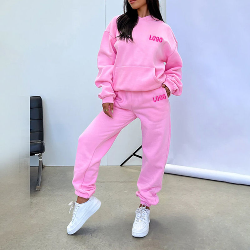 Crop Top Oversizeเสื้อกันหนาวหมวก 2 ชิ้นฤดูหนาวชุดสตรีกางเกงผู้หญิง Sweatsuit ชุดวิ่งจ๊อกกิ้งชุด jogger ชุด