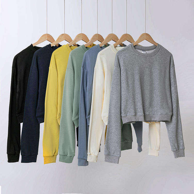 เสื้อสเวตเตอร์เอวลอยสำหรับผู้หญิง, เสื้อสเวตเตอร์คอตตอนน้ำหนักเบาระบายอากาศได้ดี100% โลโก้ด้านหน้า
