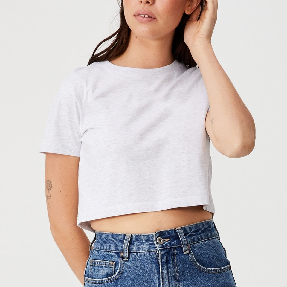 Crop Top เสื้อยืดเซ็กซี่ Basic สั้นสีขาวผู้หญิง,เสื้อ2021แขนสั้น Crop Tops โลโก้ที่กำหนดเอง