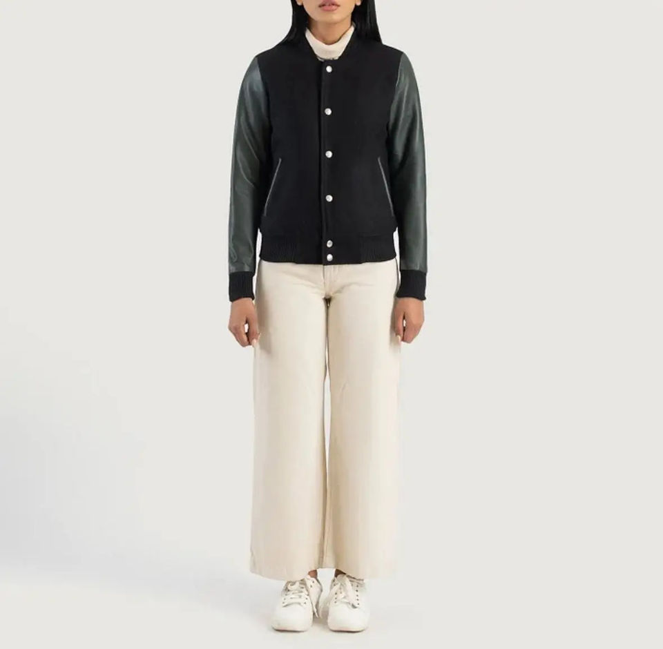 เสื้อแจ็กเก็ตครอปทรง Varsity สำหรับผู้หญิง