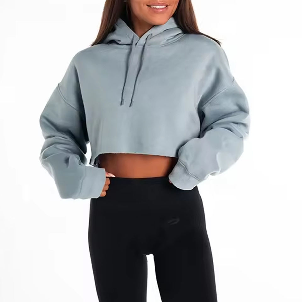 Cropped Hooded Sweatshirt For Women Casual Loose Fit Long Sleeve Top Cotton Blend Hoodie For Gym Running Travel Daily Wear