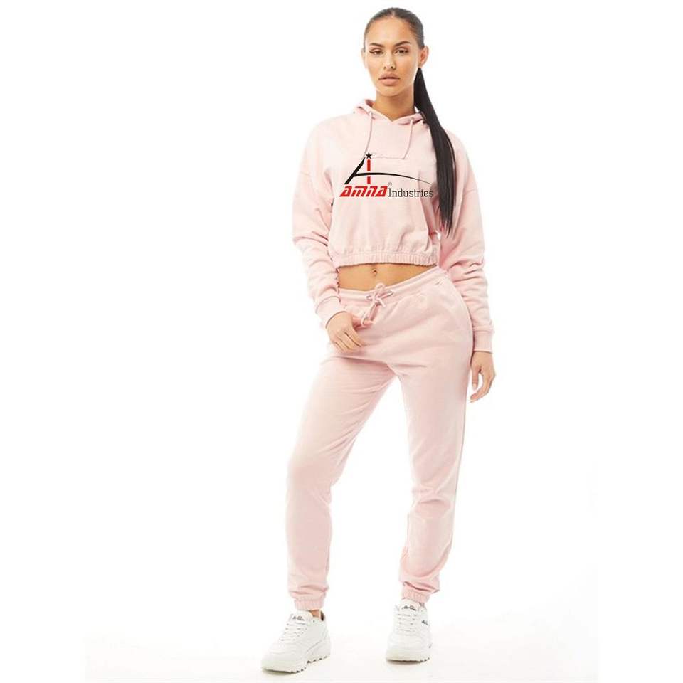 ชุดวอร์มเอวลอยมีฮู้ดสำหรับสตรี,ชุดวอร์มใส่อุ่นๆผ้าสีชมพูสำหรับเด็กใส่สบายสำหรับฤดูหนาว