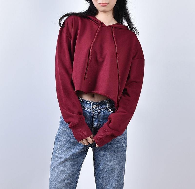 เสื้อฮู้ดครอปผู้หญิง เสื้อสเวตเชิ้ตผู้หญิง เสื้อครอปท็อป เสื้อฮู้ดแบบสวมหัว เสื้อฮู้ดสั้นสำหรับผู้หญิง