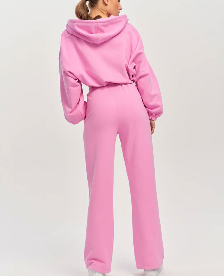 เสื้อฮู้ดครอปพร้อมกางเกงขายาวทรงบาน ผ้าฝ้ายแท้ 100% คุณภาพพรีเมียม ชุดลำลองสองชิ้นสำหรับผู้หญิง ชุดวอร์มฤดูหนาว กางเกงขายาวสำหรับออกกำลังกาย