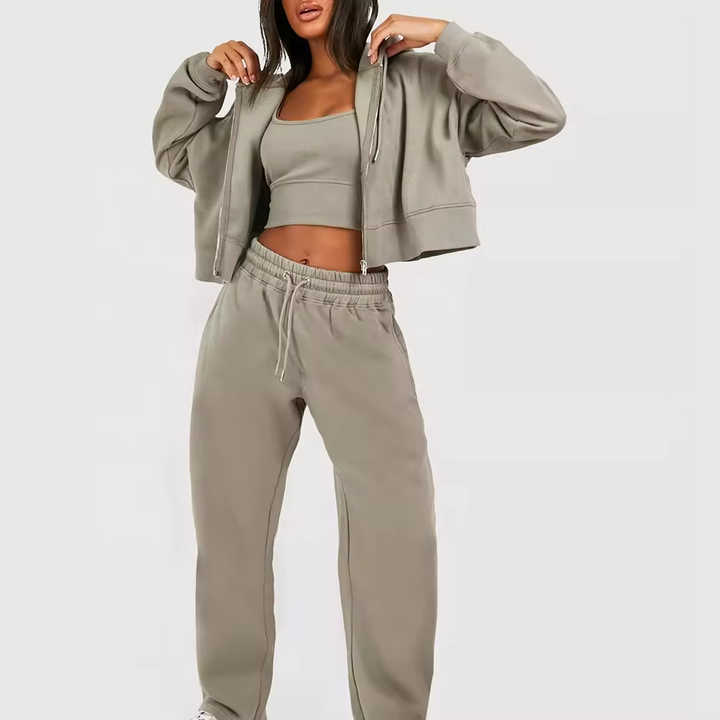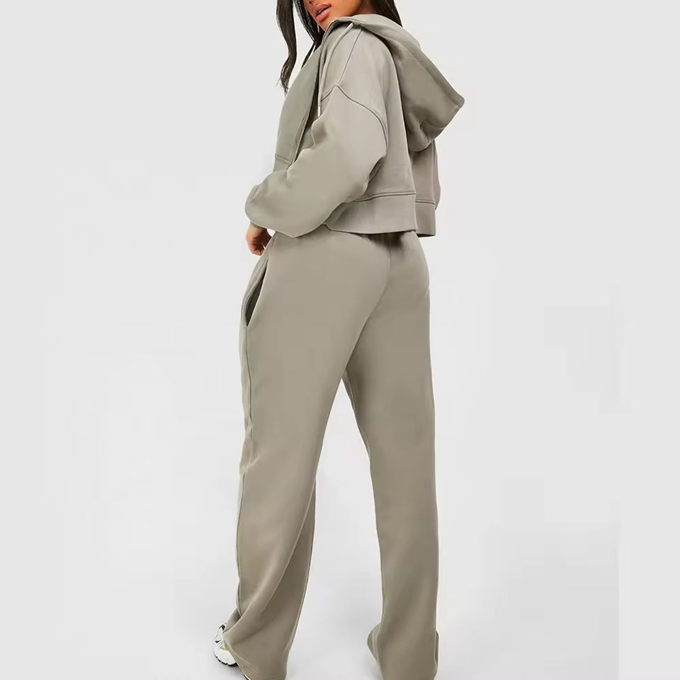 ชุดเซ็ตฮู้ดดี้ครอป 2 ชิ้น เนื้อผ้าระบายอากาศได้ดี ซิปหน้า สำหรับผู้หญิง ผลิตจากโพลีเอสเตอร์ ราคาส่งถูก