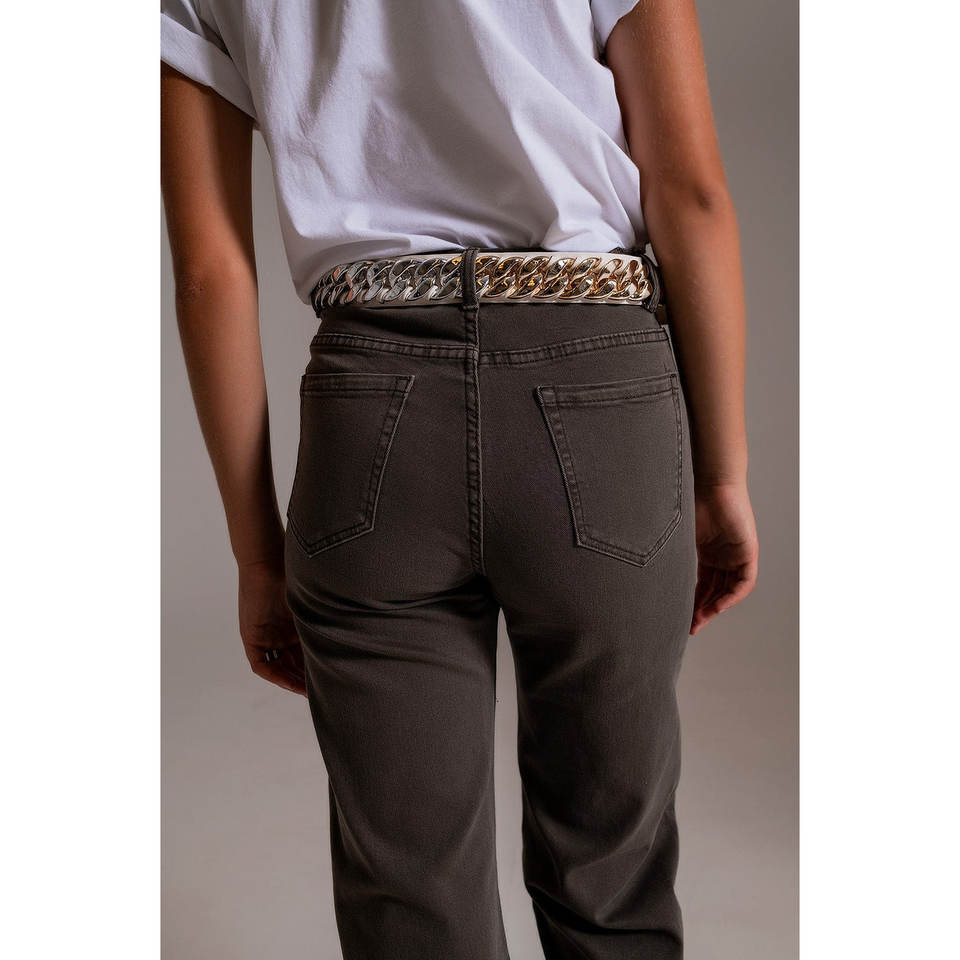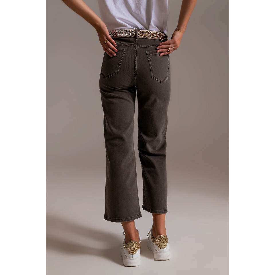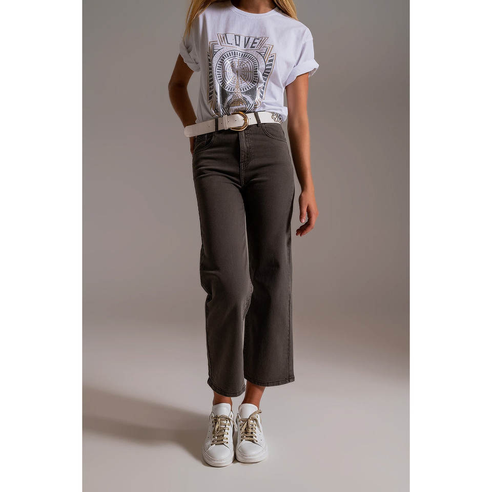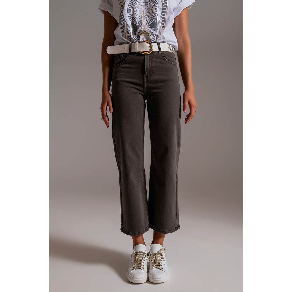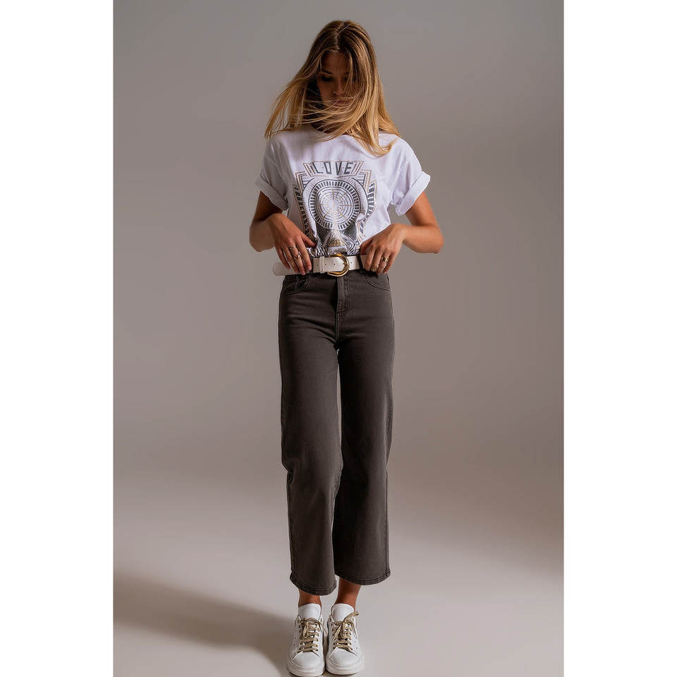 Cropped Wide Leg Grey Jeans Casual Baggy Flare Pants with Breathable Stretch Feature Leopard Print Size XL