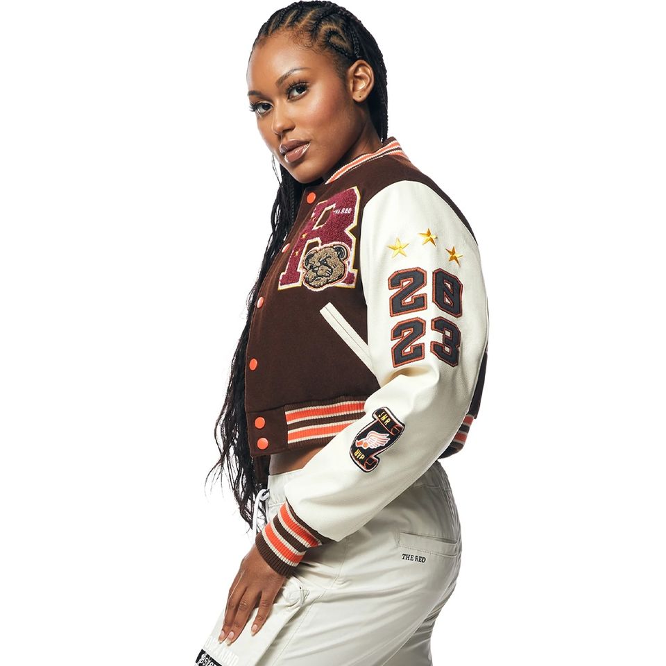 แจ็คเก็ตบอมเบอร์ทรงวาร์ซิตี้สำหรับผู้หญิง ตัดเย็บแบบครอป ผ้าซาติน เนื้อเบา สไตล์สตรีทแฟชั่น แจ็คเก็ตเลตเตอร์แมน สำหรับเสื้อผ้าแฟชั่น