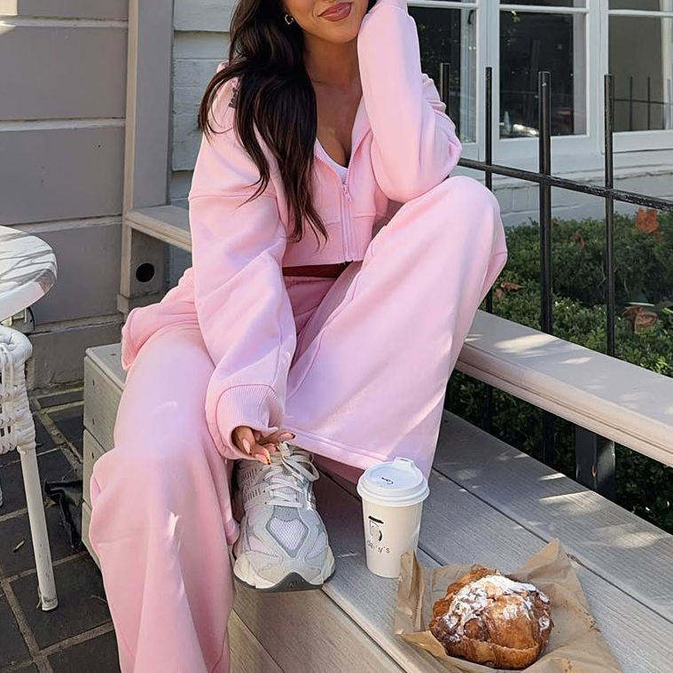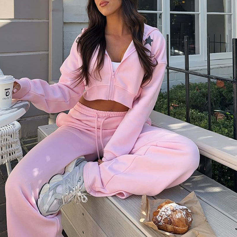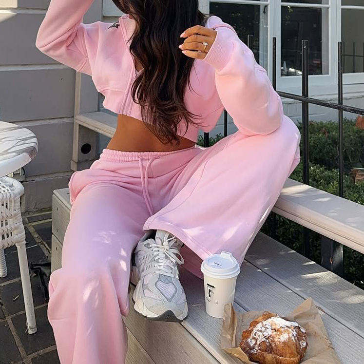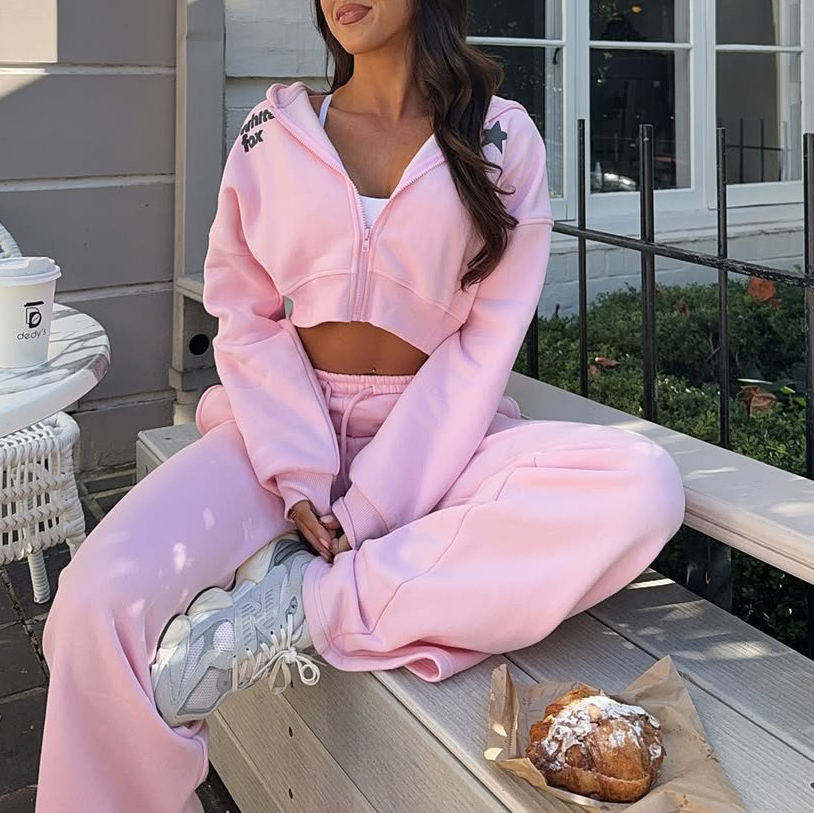 ชุดเซ็ตเสื้อฮู้ดครอปซิปและกางเกงวอร์ม งานปักลายสไตล์วินเทจ ระบายอากาศได้ดี สำหรับผู้หญิง รับสั่งทำพิเศษสำหรับฤดูหนาว