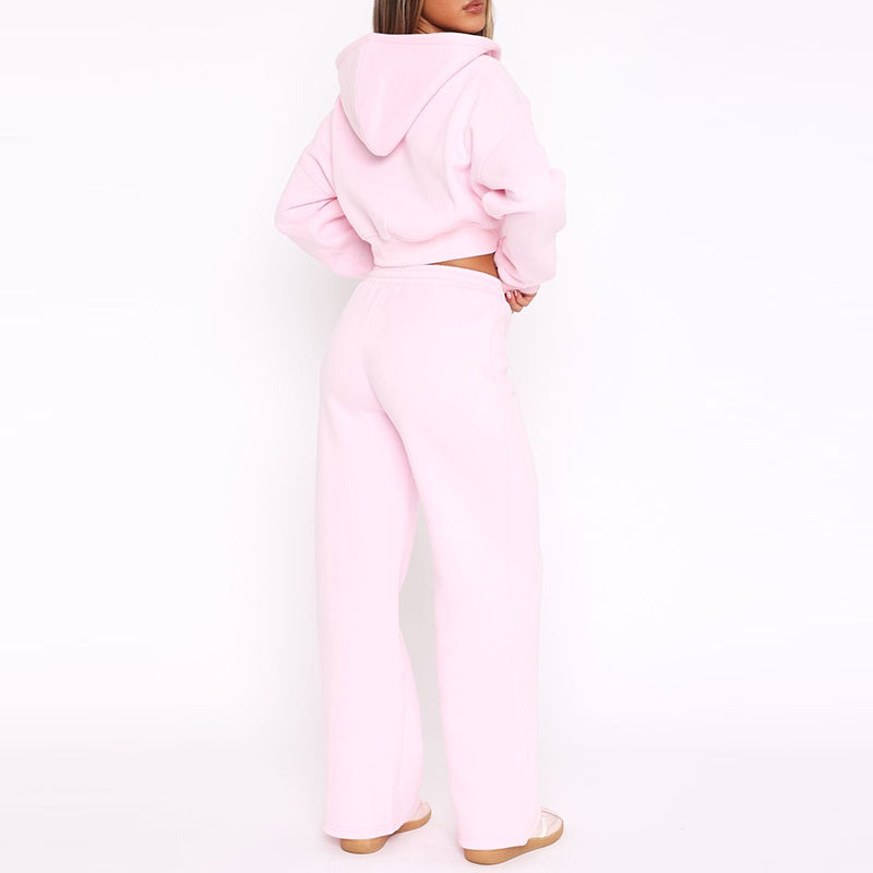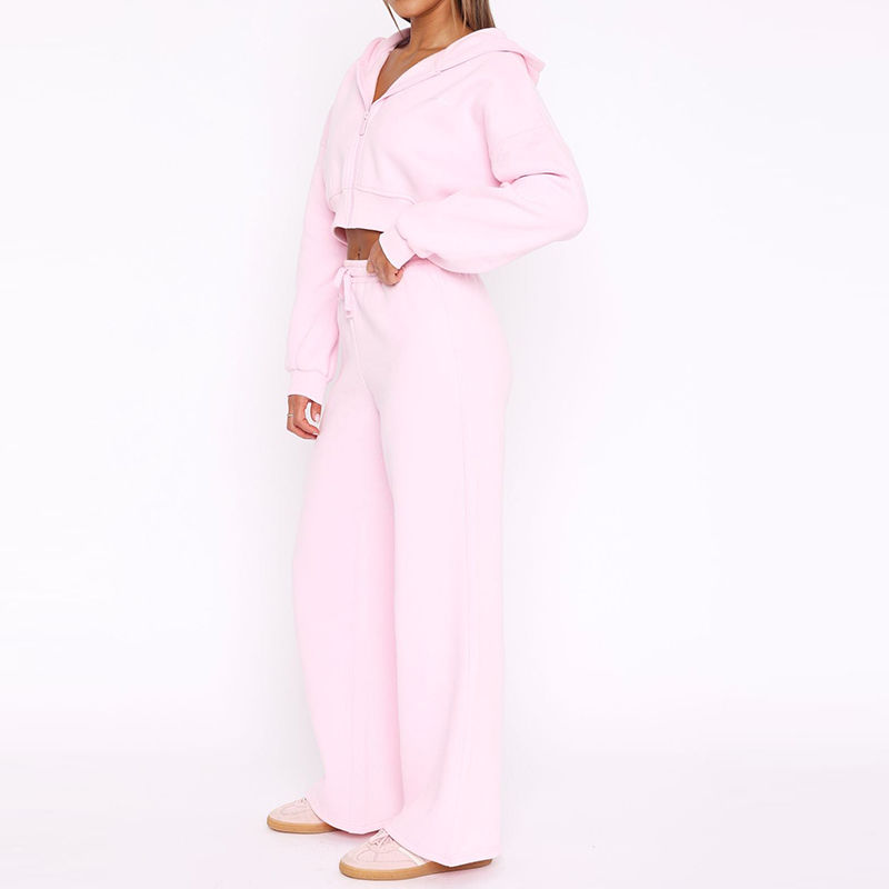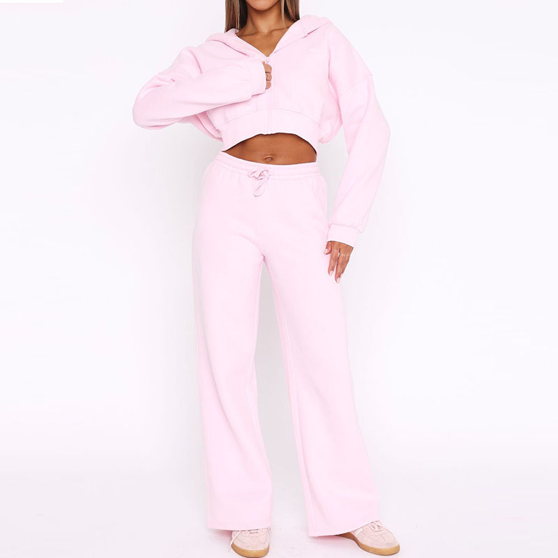 Cropped Zip up Hoodies Sweatpants Set Custom Sweatsuits Vintage Distressed Embroidery Jogger Set Streetwear Women Tracksuits