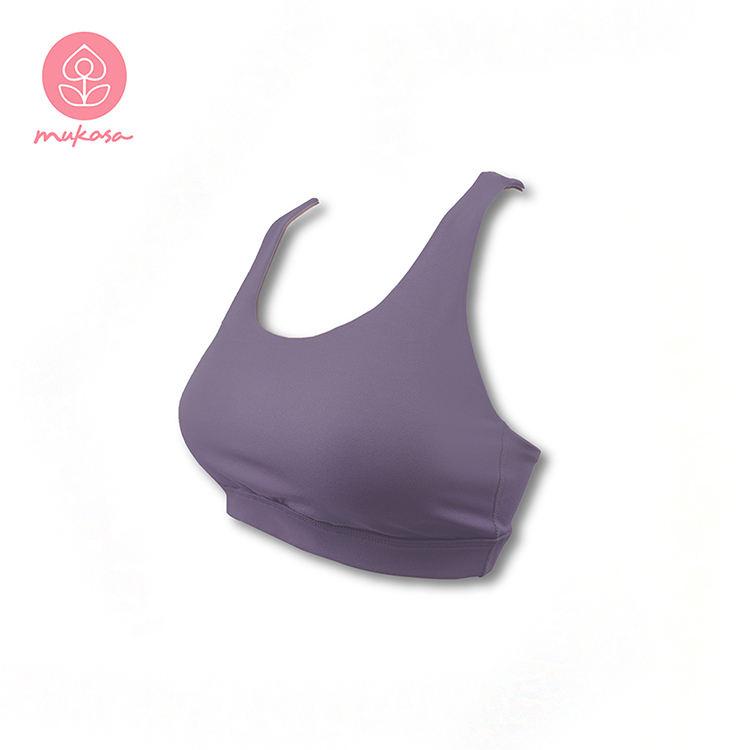 กลับข้ามชุดชั้นในกีฬาสําหรับชุดโยคะมูกาซากีฬาเข้ารูปพอดีสีทึบระบายอากาศได้ดีเข้ารูปพอดีแห้งเร็วสําหรับผู้หญิงออกกําลังกาย