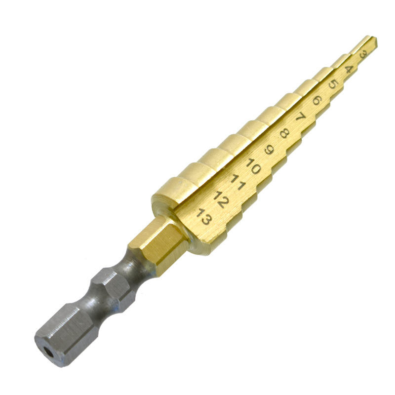 ดอกสว่านเจาะรูแบบขั้นบันได หัวหกเหลี่ยม ชุบไทเทเนียม สำหรับงานเจาะอเนกประสงค์ ขนาด 3-13 มม. ยี่ห้อ Cross-Border PAGODA