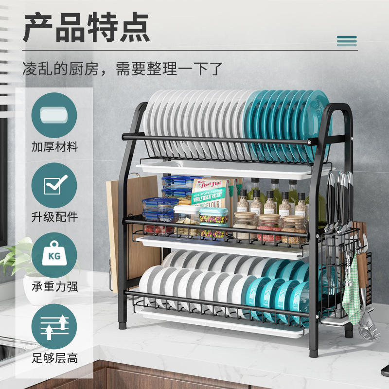 ชั้นวางจานสแตนเลส 304 แบบครอส บอร์เดอร์ ความจุขนาดใหญ่ สำหรับจัดเก็บในครัว ชั้นวางแบบสามชั้น ดีไซน์สี่เหลี่ยมทันสมัย
