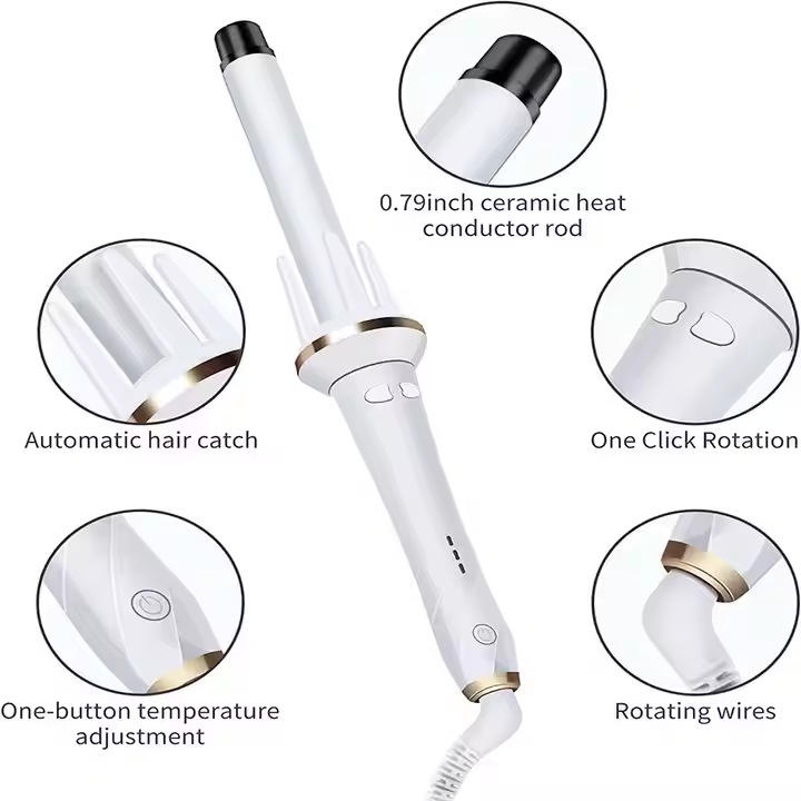 เครื่องม้วนผมอัตโนมัติแบบหมุนได้ ขนาด 28 มม. พร้อมระบบปรับอุณหภูมิ สำหรับลอนผมขนาดใหญ่