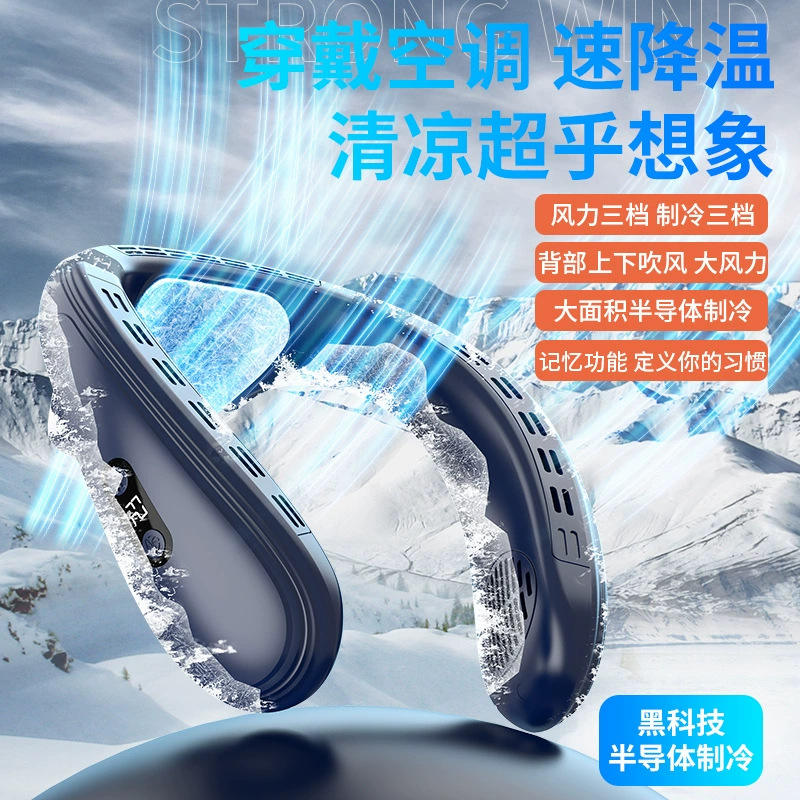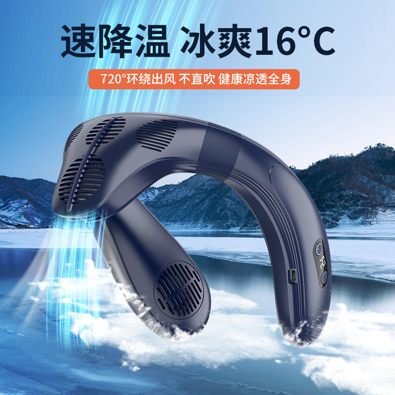 พัดลมคล้องคอไร้ใบพัดแบบพกพา พร้อมหน้าจอดิจิตอล ชาร์จผ่าน USB สำหรับใช้งานกลางแจ้ง