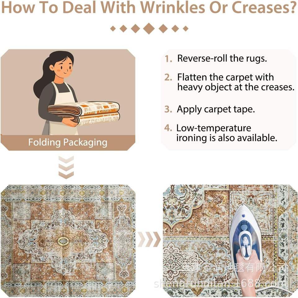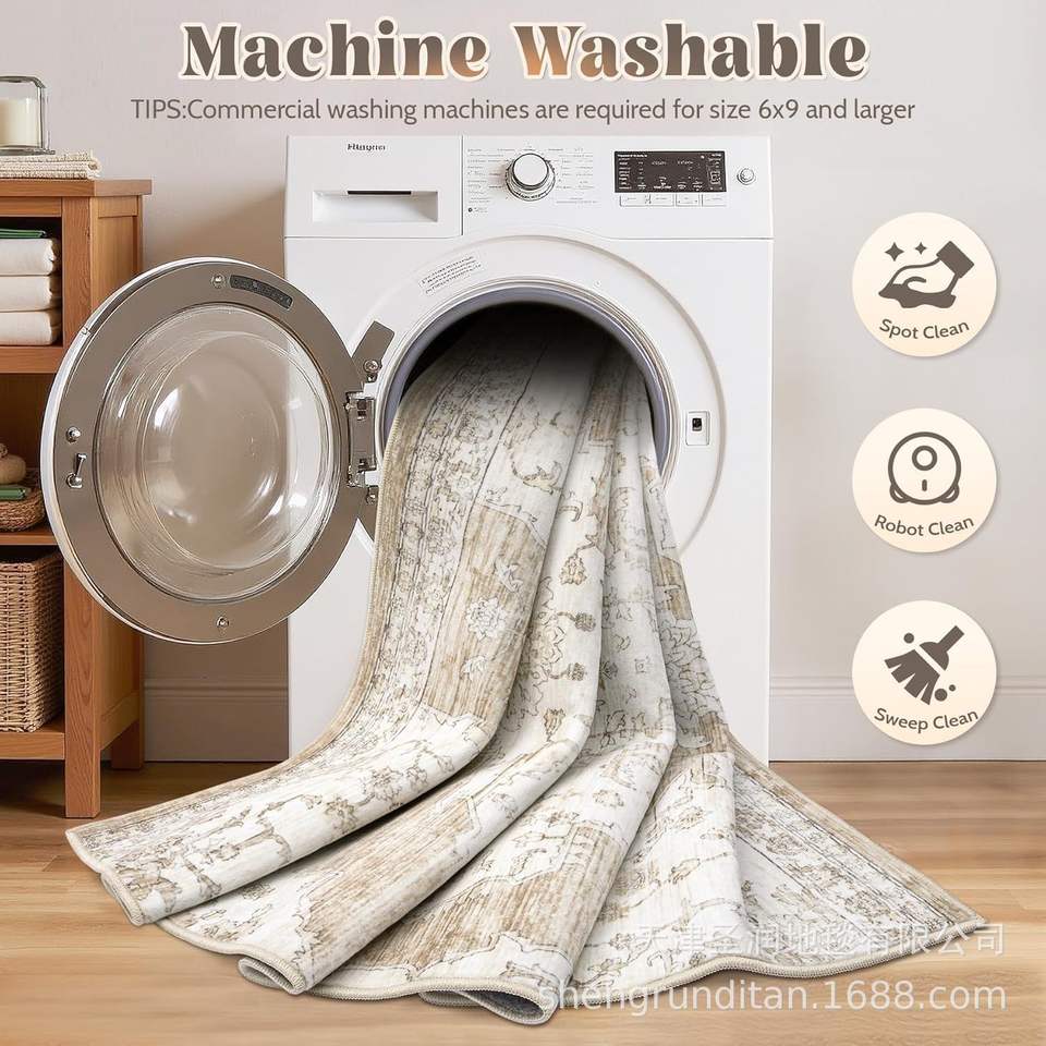 พรมห้องนั่งเล่นสไตล์โบฮีเมียนแบบอเมริกันลายทางสี่เหลี่ยมผืนผ้า วัสดุเลียนแบบขนแคชเมียร์ พับได้ ซักเครื่องได้ วัสดุ TPE กันลื่น