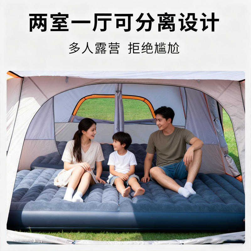 เต็นท์แคมป์ปิ้งข้ามพรมแดน 5-8 คน แบบสองชั้น พื้นที่กว้างขวาง สำหรับสี่ฤดู เต็นท์กลางแจ้ง กันน้ำ 3000 มม. สีเขียวเข้ม
