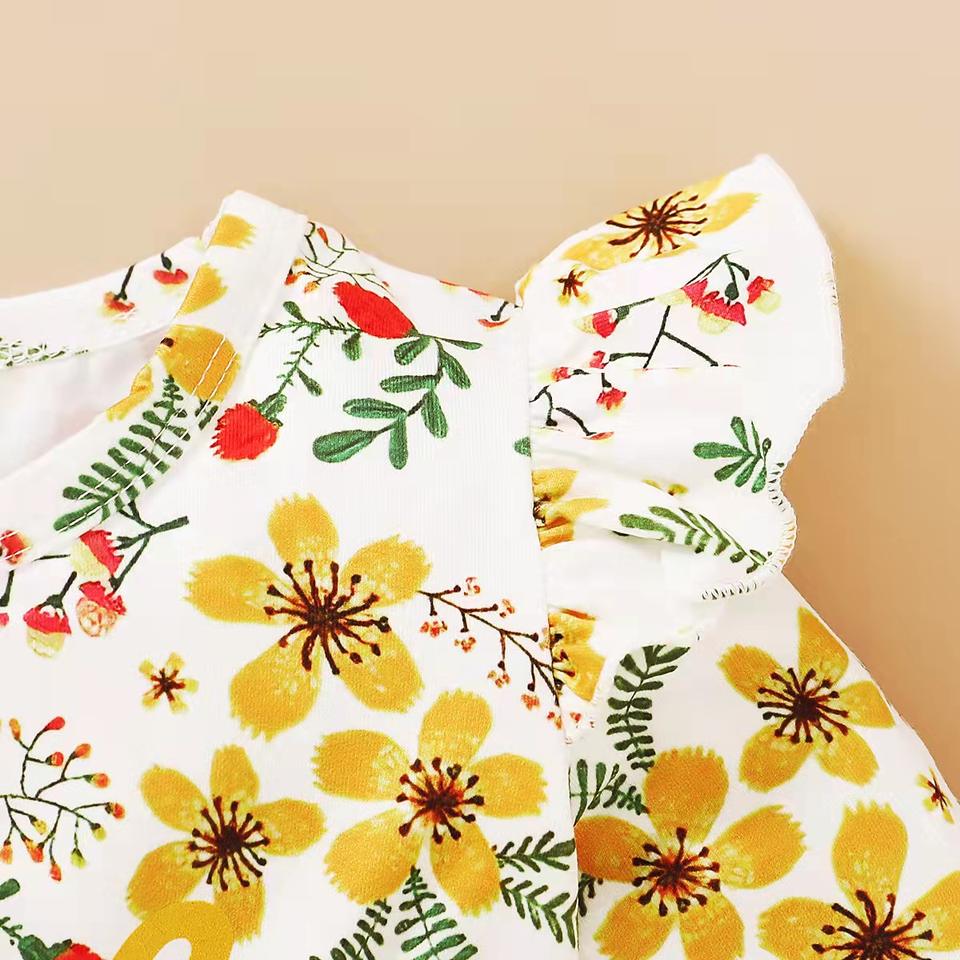 ชุดเดรสลำลองแขนบานพิมพ์ลายสไตล์ยุโรปและอเมริกาสำหรับเด็ก คอลเลคชั่นใหม่สำหรับฤดูใบไม้ผลิ