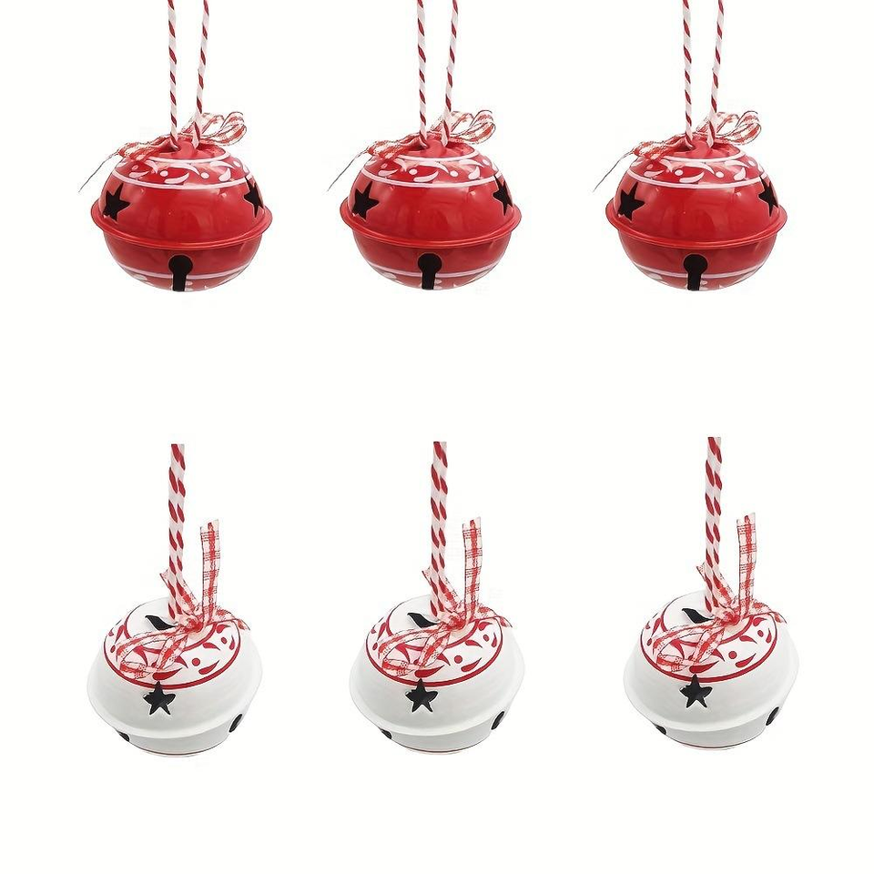 งานปาร์ตี้ตกแต่งคริสต์มาสข้ามพรมแดน ดาวห้าแฉกสีแดงขาว เกล็ดหิมะ เชือกประดับ ระฆัง จี้ต้นไม้ เครื่องประดับเหล็กขนาดเล็ก
