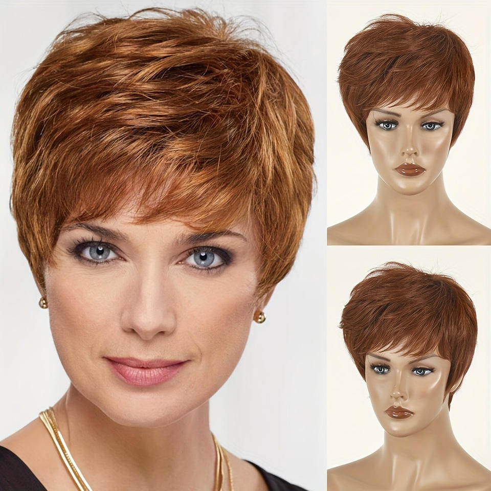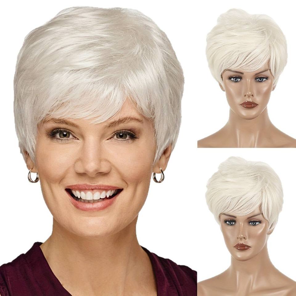 วิกผมสั้นทรงพิกซี่สไตล์ยุโรปอเมริกันสำหรับผู้หญิง หน้าม้าปัดข้าง วัสดุเส้นผมทนความร้อนสูง วิกผมมิส