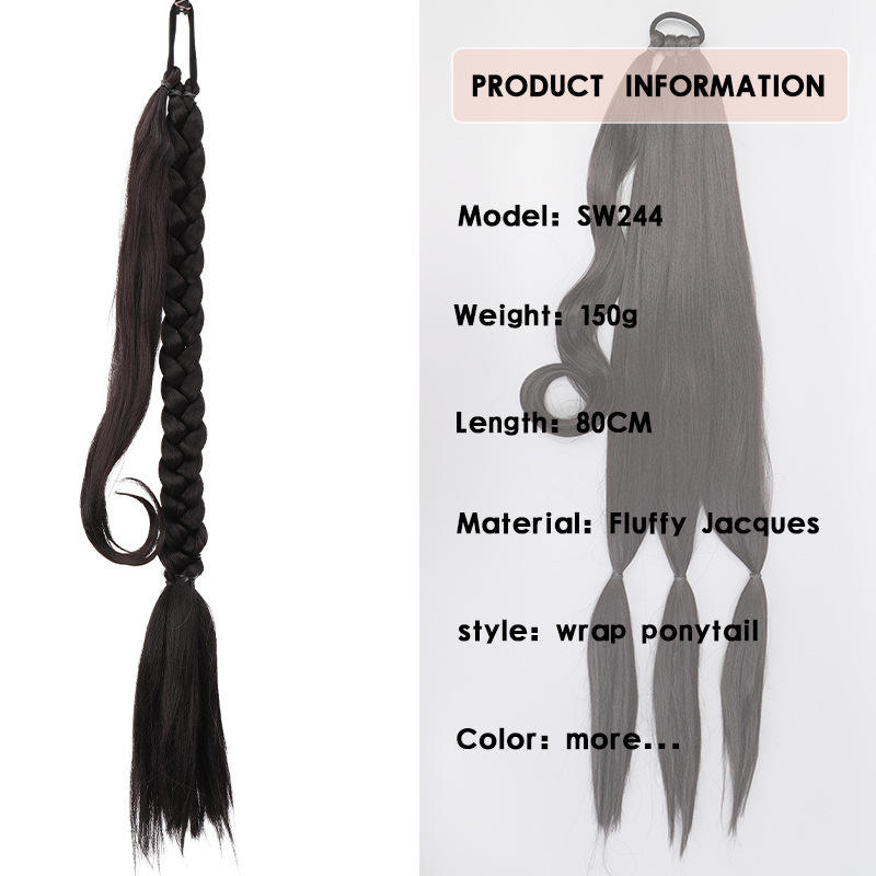 วิกผมทรงยุโรปอเมริกันแบบไขว้ หางม้าถักเปียตรง แบบพันรอบ ขนาด 55 80 100 ซม. ไม่ต้องใช้กาว ผมสังเคราะห์