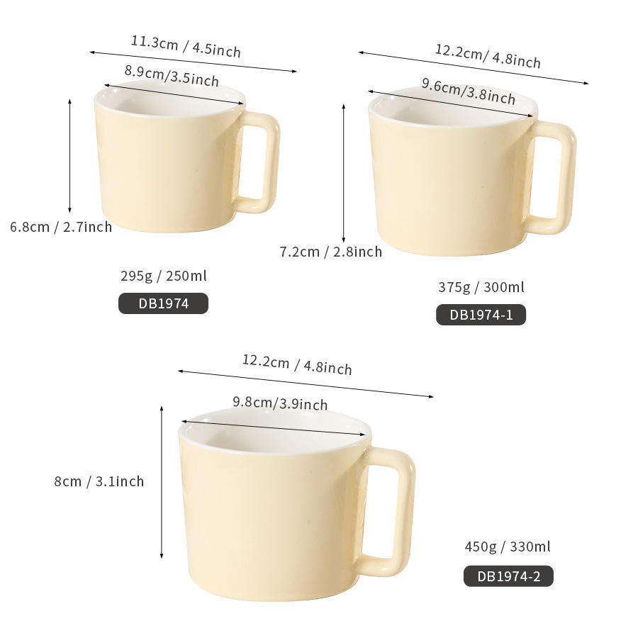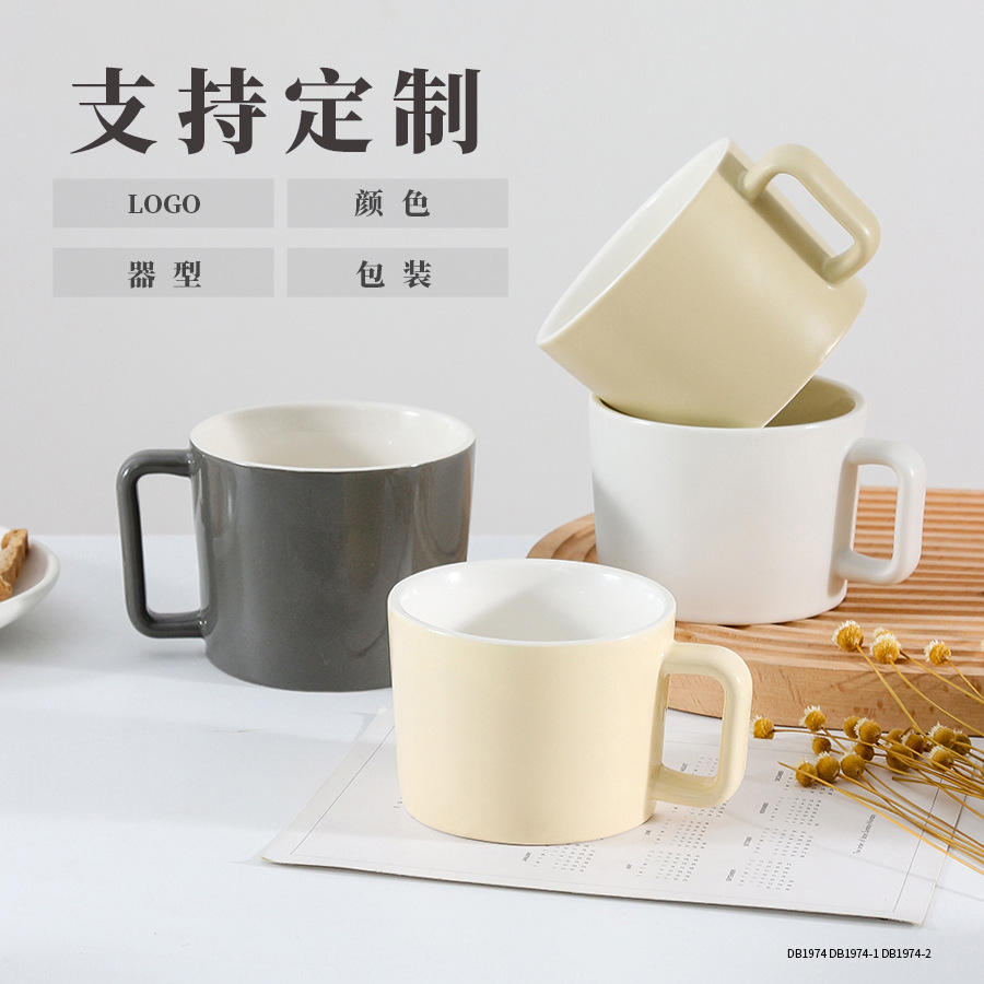 แก้วเซรามิกสไตล์ยุโรปแบบครอสบอร์เดอร์ สีพื้น มีหูจับ ปรับแต่งโลโก้ได้ เหมาะสำหรับของแจก