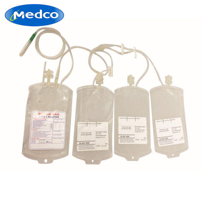 ถุงเก็บเลือดแบบใช้ครั้งเดียวสำหรับการถ่ายเลือดข้ามพรมแดน ขนาด 250 มล. 350 มล. 450 มล. 500 มล. ผลิตจากพีวีซี ปลอดเชื้อ เกรดทางการแพทย์