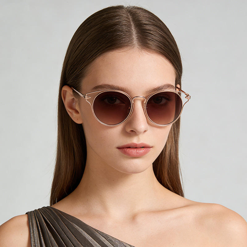 แว่นกันแดดทรงแคทอายโลหะแฟชั่นข้ามพรมแดนสำหรับผู้หญิง กรอบสีดำ ป้องกันรังสียูวี 400 สำหรับการเดินทาง สไตล์สตรีท