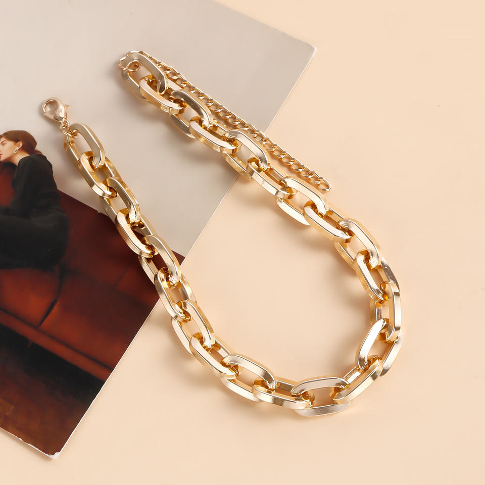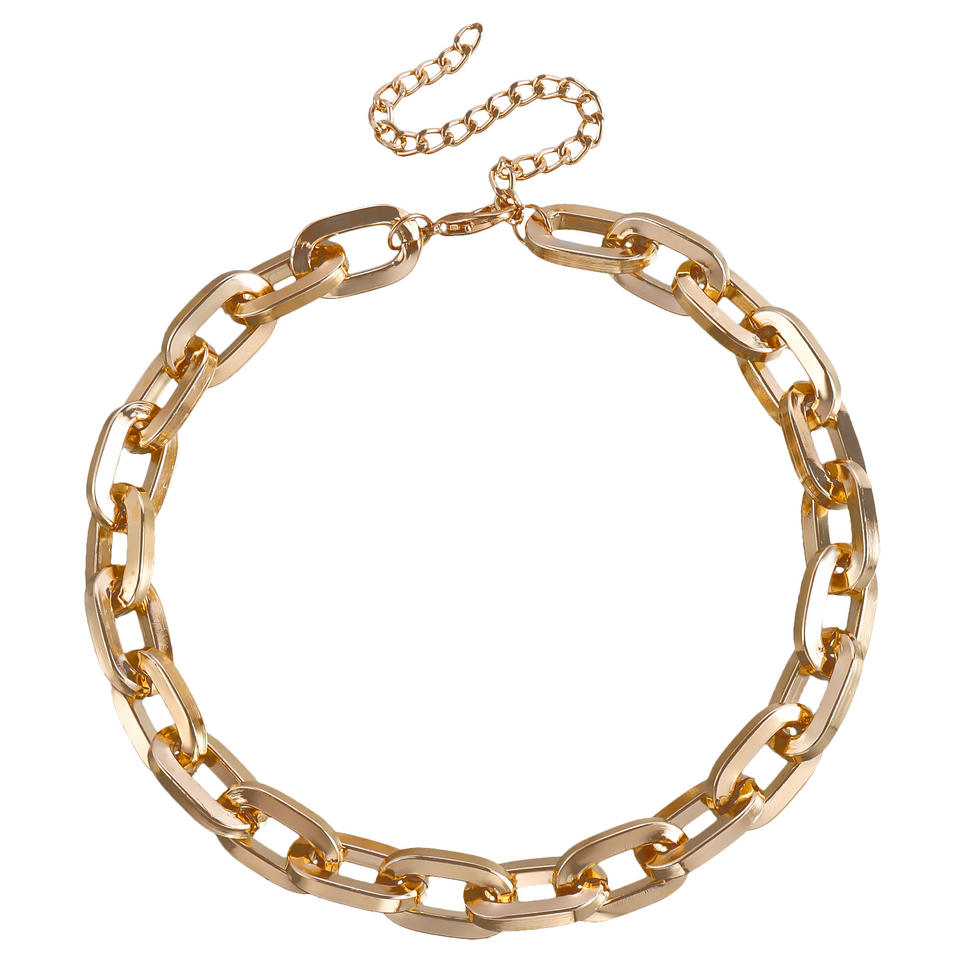 เครื่องประดับแนวพังก์สไตล์ฮิปฮอปสำหรับผู้หญิงสร้อยคอโลหะอลูมิเนียมหนาอเนกประสงค์แบบเรียบง่าย