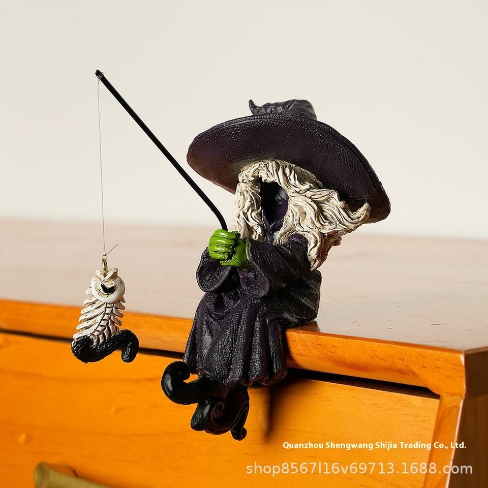 งานฝีมือผีฮาโลวีนแบบข้ามพรมแดนสำหรับตกปลาเรซิ่นแม่มดเครื่องประดับขนาดเล็กที่เป็นมิตรกับสิ่งแวดล้อมสำหรับตกแต่งถังใหม่
